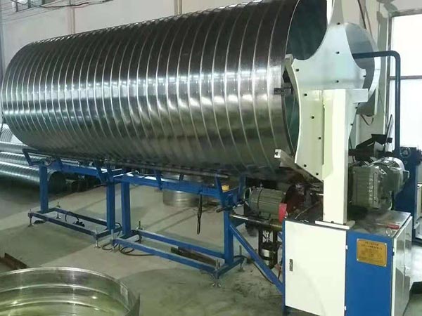 材質常用鍍鋅鐵帶(俗叫星鐵),不銹鋼帶,軟鋁帶。 材料厚度:0.3至1.2毫米 材料寬度:125毫米 制管直徑 φ125至φ1500毫米(直徑與厚度適當配合)